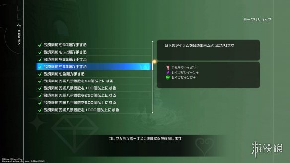 完成收集奖励可以获得奖励或增加可以合成的物品种类