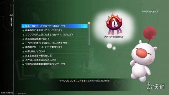 莫古力商店:在这里可以买卖道具,或是合成。每次打开合成菜单,莫古力会自动帮你保存背包中的素材。除了可以合成各种道具外,本作追加了消耗特定素材,对键刃进行强化的功能,也是在莫古力处进行。