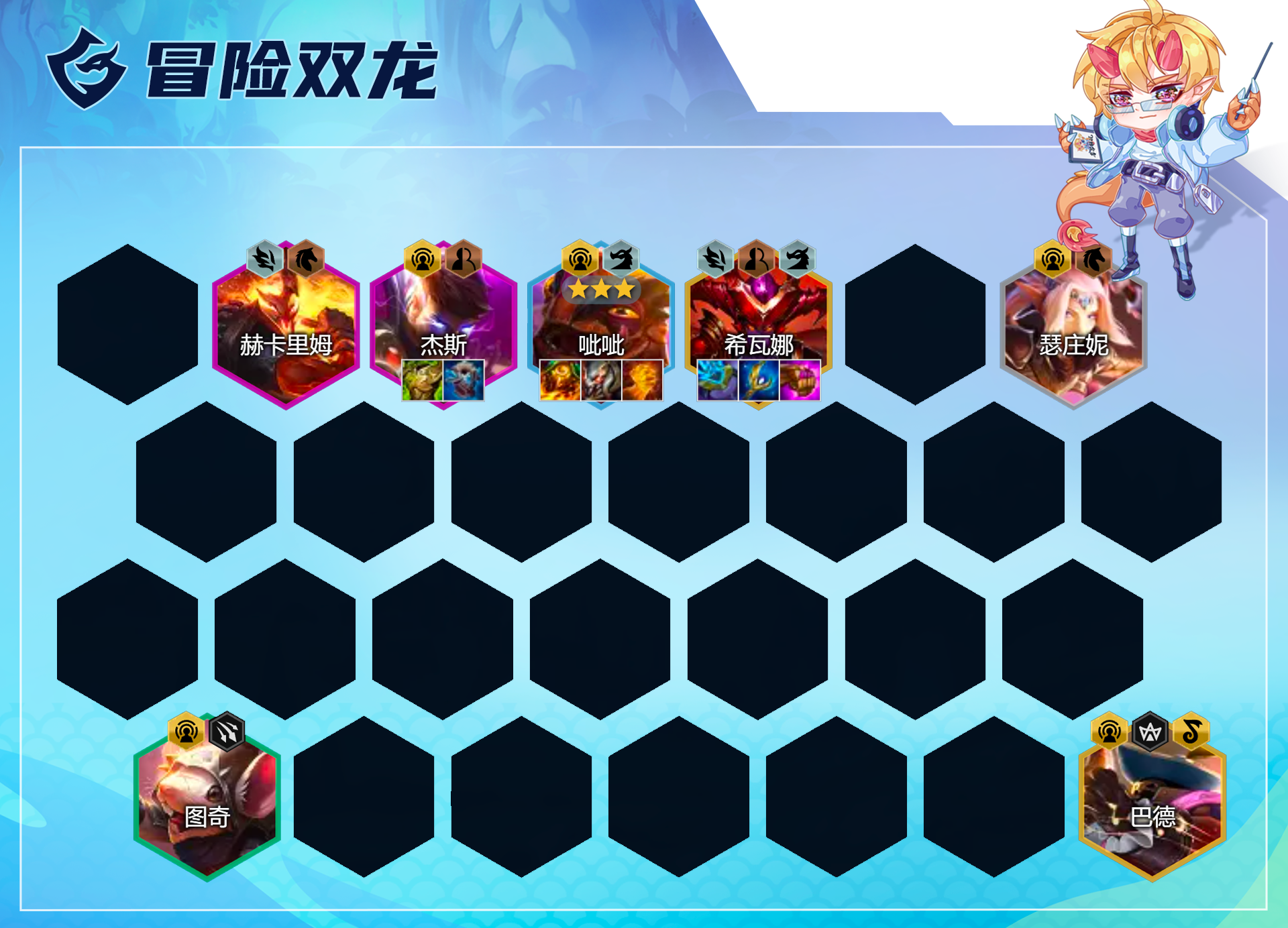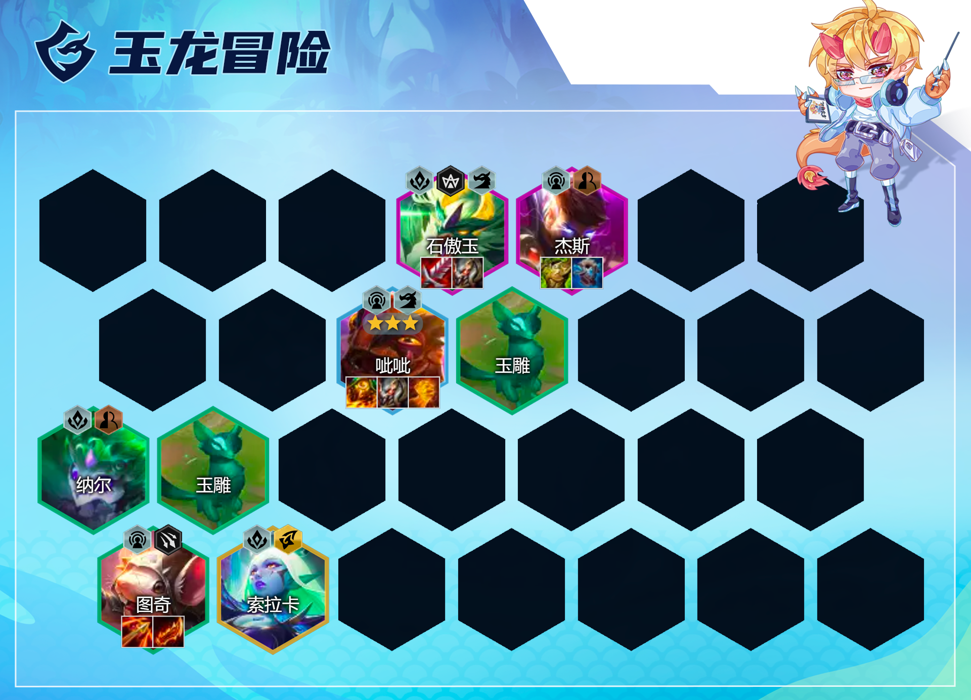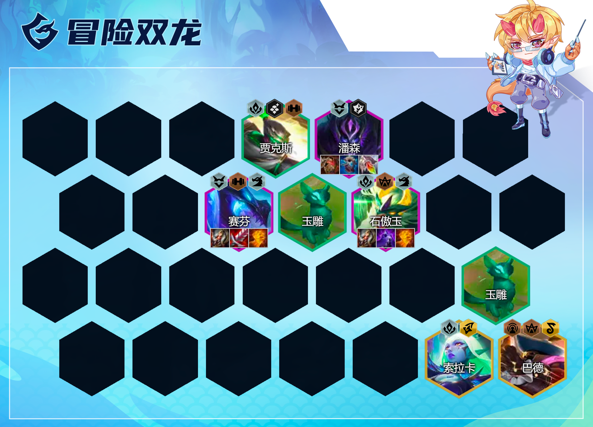 在无冒险转情况下,现在可考虑玩的阵容是玉龙冒险、冒险呲韦、冒险双龙这3套。