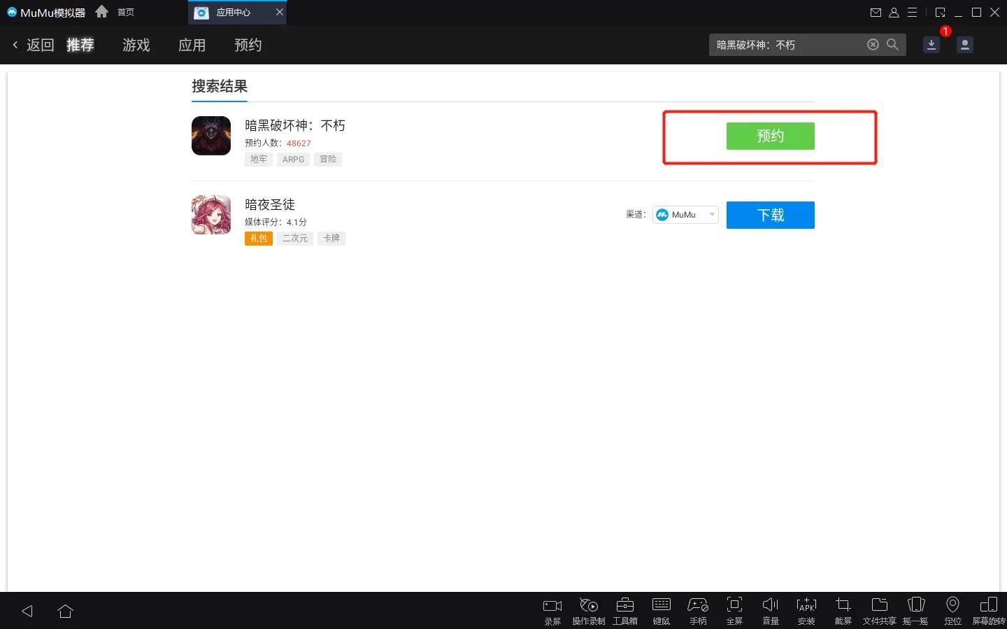 第一步:下载并打开MuMu模拟器,在模拟器内搜索“暗黑破坏神:不朽”。