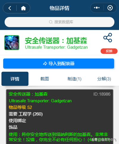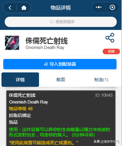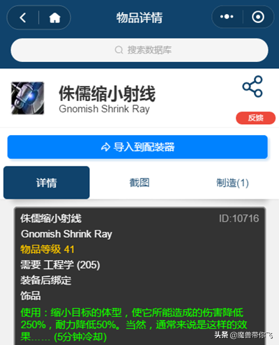 需要工程215,装备绑定,使用时无需侏儒工程学。