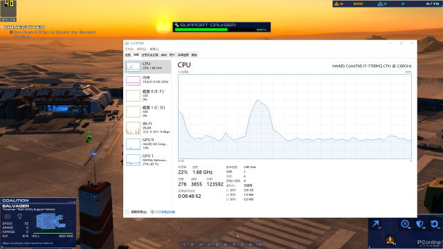 就拿《七日杀》和《家园:卡拉克沙漠》这两款游戏来说吧。拿7700HQ+GTX 1060(6GB)+32GB内存的三年前游戏本来玩,运行《七日杀》,其仅有50 fps上下,同时还波荡起伏的平均帧率表现,本就算不上流畅的游戏体验。