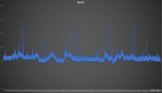 而跌破30ms的帧生成时间,就更是常有的事情了——30ms什么概念呢?差不多相当于稳定30 fps帧率的游戏体验,比这个水平还差的常态游玩体验,基本上可以说是毫无游戏体验了。这可比稳定二十多帧的游戏体验差多了,走两步顿一下,走三步卡一下,这根本就没法玩嘛!