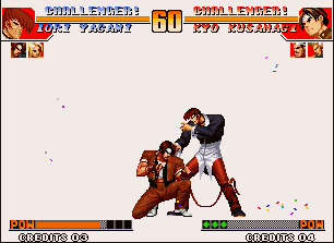 转到拳皇97的故事线开头,故事中的八神曾经杀了草薙的父亲,而且草薙和八神是封印大蛇的三神器(另一个是神乐千鹤),但八神体内却一直有着大蛇的血脉,也可以算做大蛇的儿子,所以草薙和八神一直不对路,但最终一战时,八神用身体拖住了大蛇,为草薙创造了机会,封印大蛇,然后牺牲。两人的恩怨也随之烟消云散。这也是为什么两人会变成世仇?又为何化解的原因!剧情最后结尾处还有一个非常有意思的地方:如果你在97里选了八神(非三神器队),那打完大蛇后,不要按任何东西,等字幕结束后,还必须再打一次草薙。(也相对于故事线的结尾来说增加了一个小彩蛋吧)