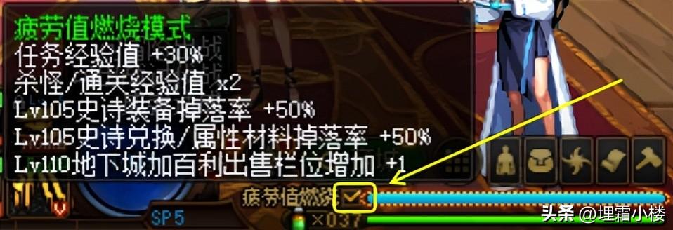 疲劳值燃烧模式下,疲劳值消耗速度为原消耗速度的两倍。任务经验值,杀怪/通关经验,史诗、材料掉落率,加百利出售栏位也会相应增加。疲劳值燃烧模式仅在普通地下城生效,在高级地下城不生效。