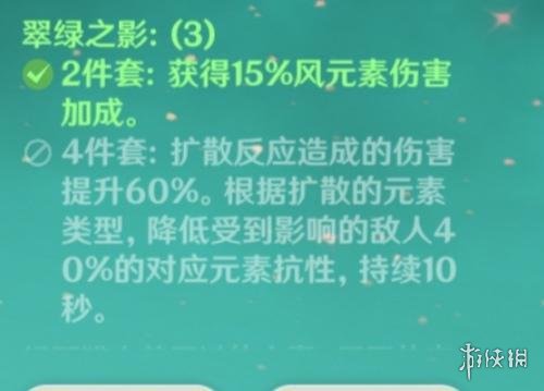 2、到了后期,还是推荐翠绿猎人四件套也就是风套四件套,毕竟有着高贵的40%减抗,还是更适合打副c位置的万叶