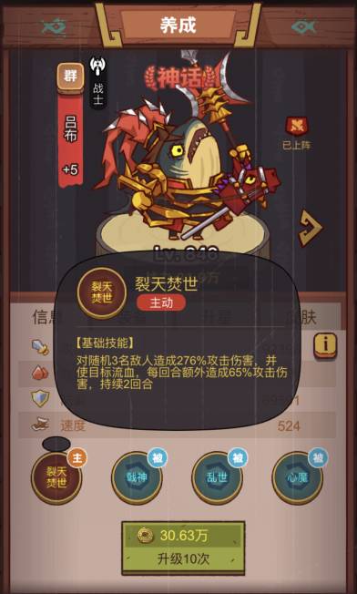 吕布:主动技能效果对随机3名敌人造成276%攻击伤害,并使目标流血每回合额外造成65%攻击伤害,持续2回合。