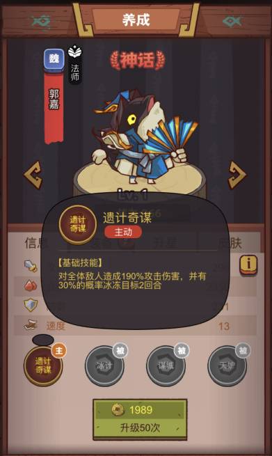 郭嘉:主动技能对全体敌人造成190%攻击伤害,并有30%的概率冰冻目标2回合。