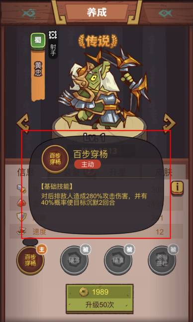黄忠:血量550亿,大招释放后的技能效果为对后排的敌人进行攻击并附带一定的概率沉默2名敌人,被动技能是普通攻击的时候会增加黄忠自身的暴击率。