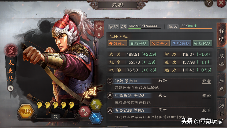 没有铁骑驱驰的玩家,只能找替代战法,带锋矢阵就只能让太史慈主将。