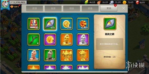 野外地图中摧毁野蛮人城寨后,系统会根据部队的伤害占比分配奖励,其中就包括【抵抗之箭】等道具。消灭野蛮人的部队,也有概率获得抵抗之箭,掉落的数量和野蛮人部队的平均等级有关。