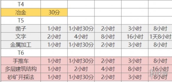 这一个阶段算是一个前期到中期过度的阶段,我相信也不会有太多战争,所以这一个时期依旧是优先升级经济类科技。在T5阶段优先把文字这一栏升到满级,因为文字增加了研究速度,对后面的研究有很高的帮助至于T6阶段,凿子和金属加工作为加资源产量的十分鸡肋建议先不升,等到军事研究的差不多再升。军事方面由于前期不打仗,建议追踪术和寻路术升一级优先升级后面的兵种加成(攻城车除外)。