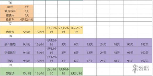 2. 由于这里建议学院的升级放在与升级下一级市政厅的同时,所以没必要一定要先把时间短的军事类科技升满再升时间长的,可以算着时间插空升级一些军事类科技,避免出现学院升级在等科技完成的情况。