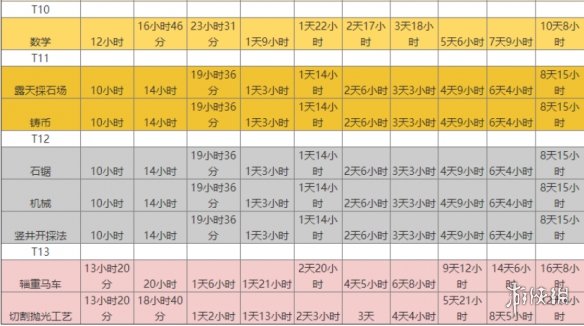 在21级之后,游戏才算是真正进入了中后期,此时的建筑升级都需要很长时间,学院升级一次的周期也变得很长,所以有足够的时间升级科技。在王国不发生大战争的情况下,优先升级数学到能升的最高级,之后是机械。由于地图上人工采集宝石效率很低,所以切割抛光工艺建议不升,用来有科技战力提升活动的时候冲分用,自重马车同理。