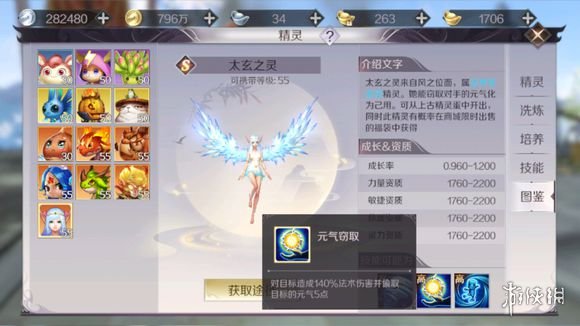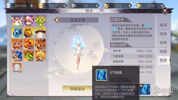 从精灵的技能来看,太玄之灵属于PVP型宝宝,通过不断的窃取敌人的元气,5次之后造成控制效果,敌人无法移动和攻击就只能站着挨打,还能增加对目标的伤害。带上一个太玄之灵参加打巅峰对决这种1V1的活动简直无敌!