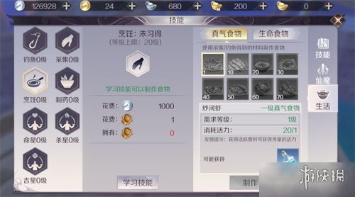 大家可以在【交易行】中的【商业】分类来购买食品,或者在【技能】-【生活技能】中自己制作食品,当有了高等的食品恢复道具之后,自己的血量就有保障啦。