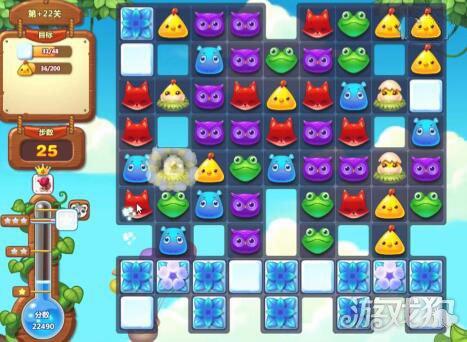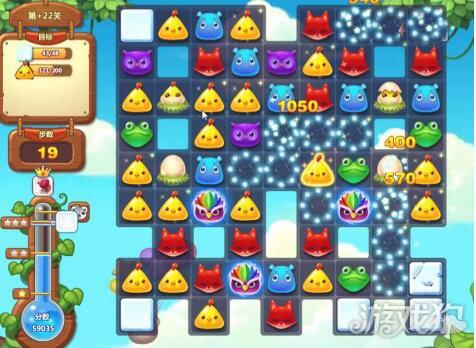 开心消消乐隐形关卡22关图文步骤。在本关卡中,每一个鸡蛋都可以孵化出大量的小黄鸡,在孵化的时候,我们注意到关卡中的布局,小黄鸡大量的出现,会自动的组合成魔力鸟,下面来看看这个关卡的布局展示吧,希望可以帮助大家。