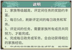 1、家族升级是需要军资的,完成家族日常的进度宝箱都会获取一定奖励,完成家族政务和军务任务都可获得军资。家督可通过军资升级家族,家族升级可以增加家族成员的上限。