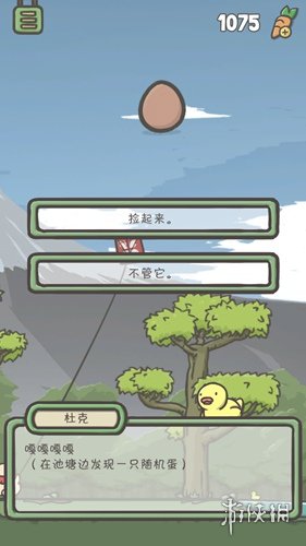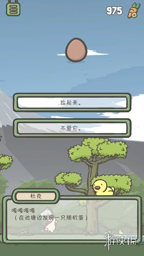 4、多点几次小黄鸭,就会出现问我们是否要捡鸭蛋,当然我们选择“捡起来”,就能获得一个鸭蛋了。