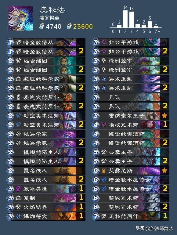 奥秘:体感73开,大优对局;我的曼科里克原先卡位是部落特工,我去掉了因为我发现去掉以后仍然是优势对局;奥秘法多可以换回去;会防奥秘就不难打,但怎么防三言两语说不清;