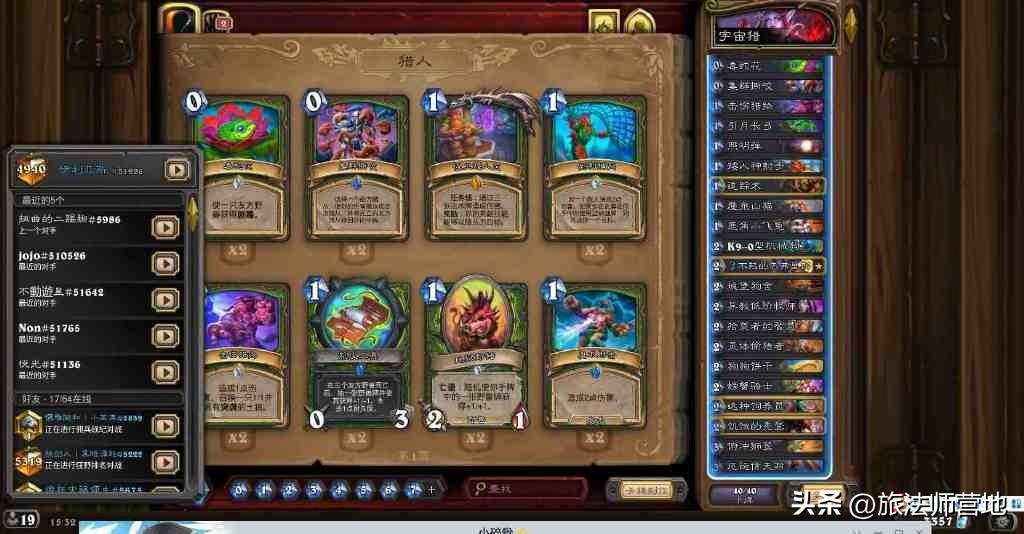 今天的卡组有:偶数萨、海盗奇迹贼、法庭巨人机械骑、40战吼萨、缺德、奥秘法、宇宙猎、纯海雷贼、40报告骑。
