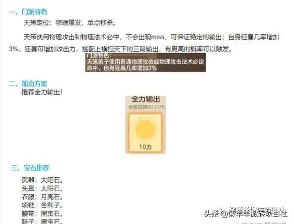 天策:相当于梦幻的大唐,我是10力加点.,适合新手全力加点上去硬砍,天赋技能是物理必中还能提升一定的狂暴。正所谓重剑无锋,在绝对的力量面前什么策略什么战术都是浮云,没有一刀解决不了的问题,如果有就两刀;