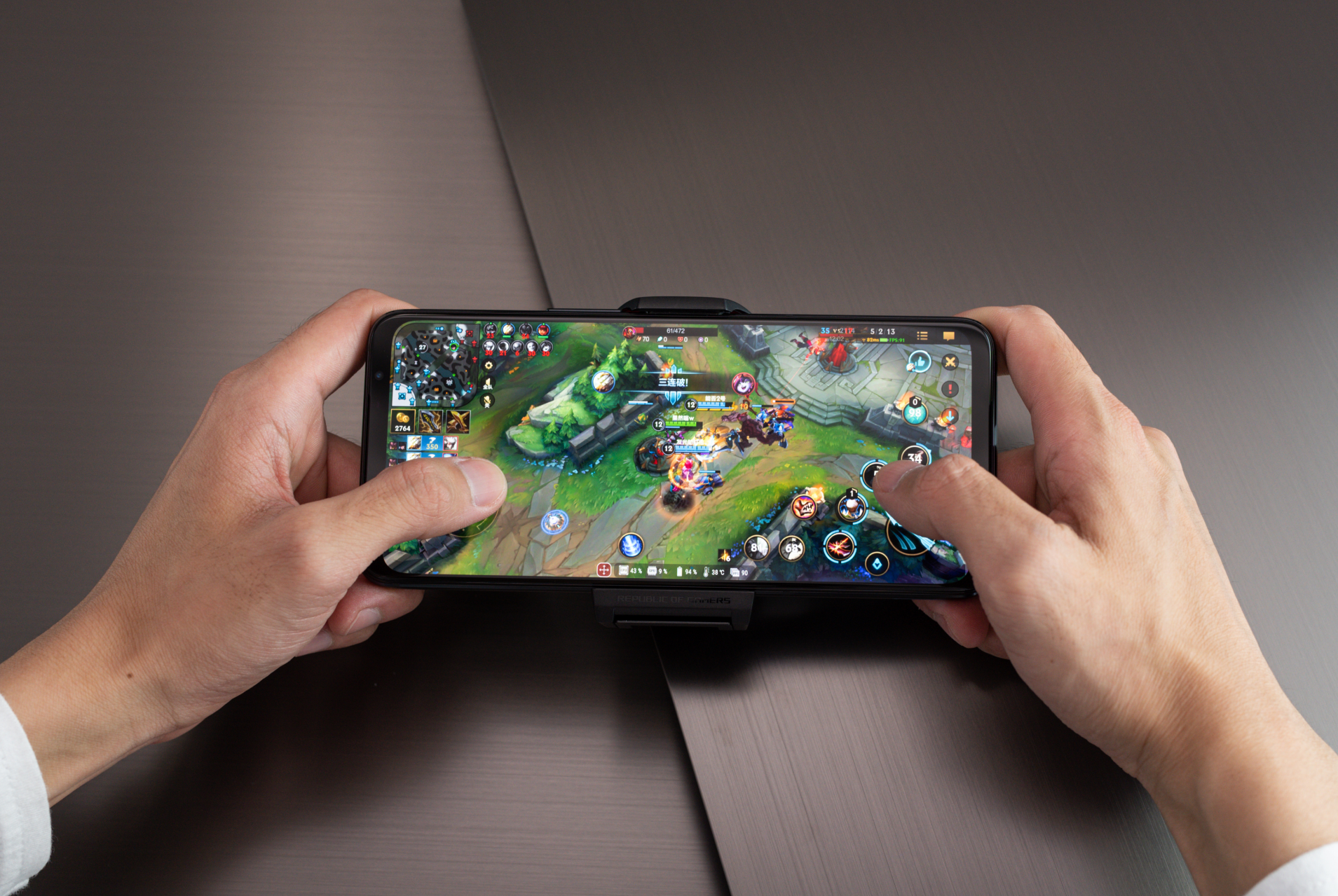 除了性能、屏幕这些基础的配置外,ROG游戏手机6还带来了Airtrigtter 6操作系统,在手机边框上放置了两个超声波肩键,拥有多种游戏交互方式,配合上酷冷风扇6使用,更是拥有20个映射按键,让你能轻松实现多指操作。如前文提到的《暗区突围》便很好的适配ROG游戏手机6,快速的进行切、跑动等动作,轻松打出高玩一般的操作。
