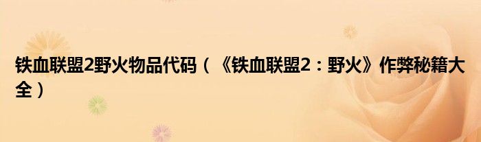大家好,来为大家解答以上问题。铁血联盟2野火物品代码,《铁血联盟2:野火》作弊秘籍大全很多人还不知道,现在让我们一起来看看吧!