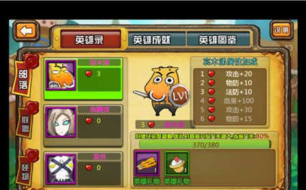 在英雄图鉴栏目里,点击英雄录,我们可以看到赠送礼物的界面!选择你要赠送礼物的英雄!我们可以看到达到相应好感度可以获得属性加成哦!