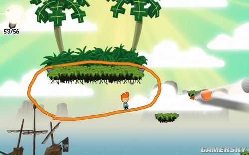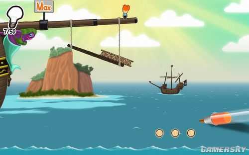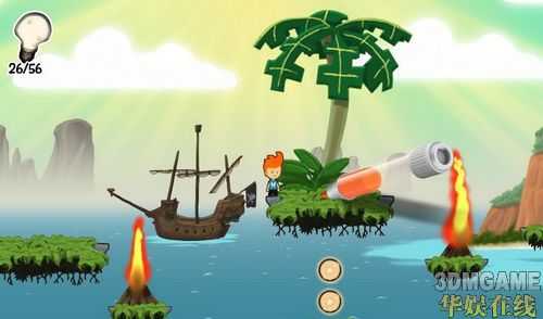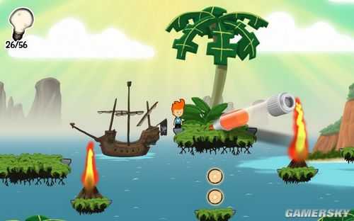 场景二:把木筏推下海里,然后跳到中间的岛上...画个跷跷板,拿完东西回小木筏上,然后乘热气球登船。场景三:又到一艘大船上了..到上面收集完东西,过下个场景。不知道是不是bug有个小怪物一打死就跳出...大家遇到过这种情况么?这里有个大炮,打完之后第二个隐藏要素。