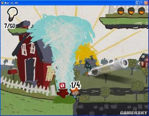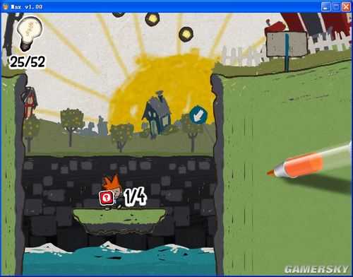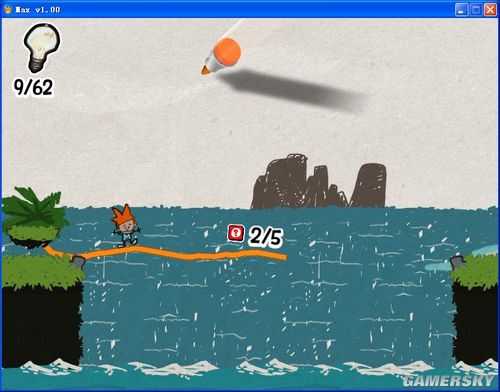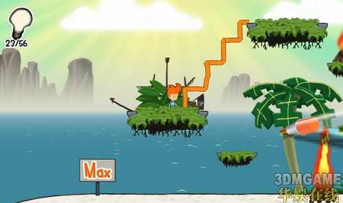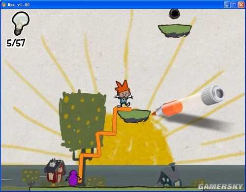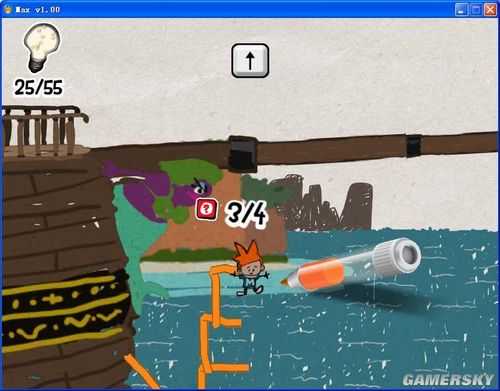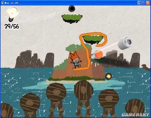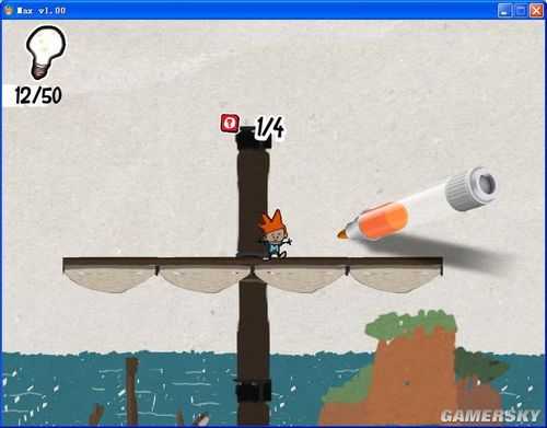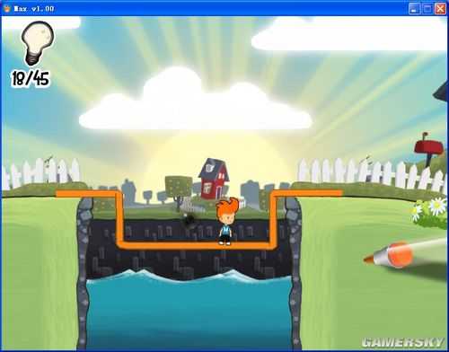 这些线条或图案将会成为玩家过关的关键,帮助玩家到达特定地点或解开机关。像是一条平凡的直线,架在两道悬崖间就会变成桥梁,搭上高处能变成斜坡让Max攀爬,在适当场合可变成冲浪板。另外在游戏中按下空白键,可以让游戏场景成为静止的「童画」,方便玩家确实画出自己想要的图形。