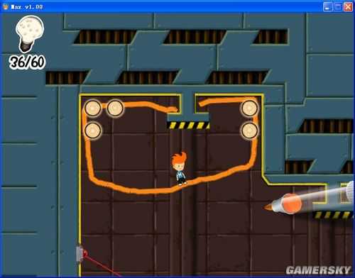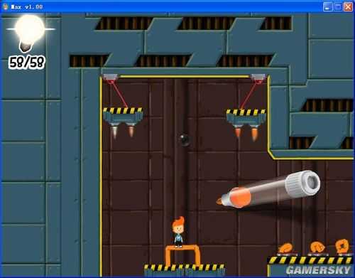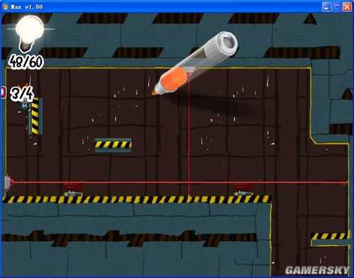 场景三:不用跳过去。。我跳过去结果还要跳回来。找好时间差从激光的缝隙里跳下去,下来后右边上面有个小空隙,跳上去里面有隐藏第三个隐藏要素。之后跳上去,顶一下开关就冲过去...