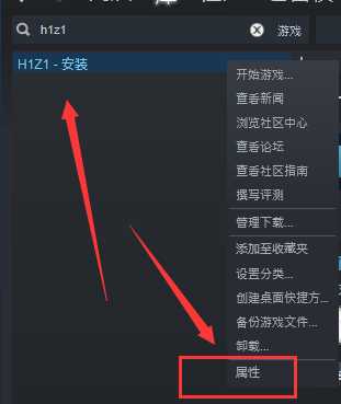 1、打开你的steam,在库中找到H1Z1,右键游戏找到属性,选择属性选项进入。