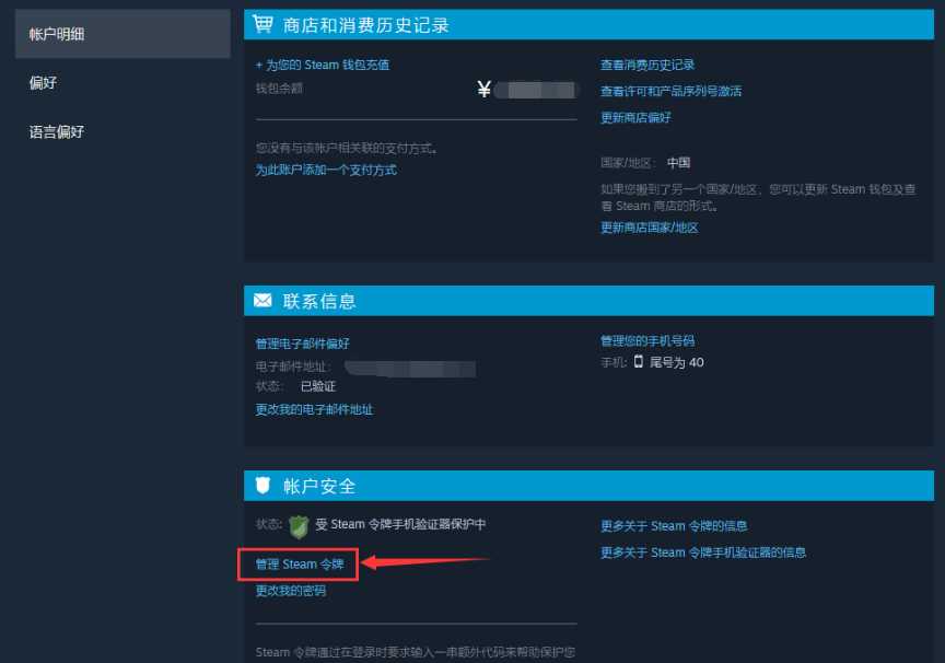 首先登录steam客户端,点击右上角个人信息下的账户明细,选择下方的管理steam令牌。点击取消对其他所有设备的授权。