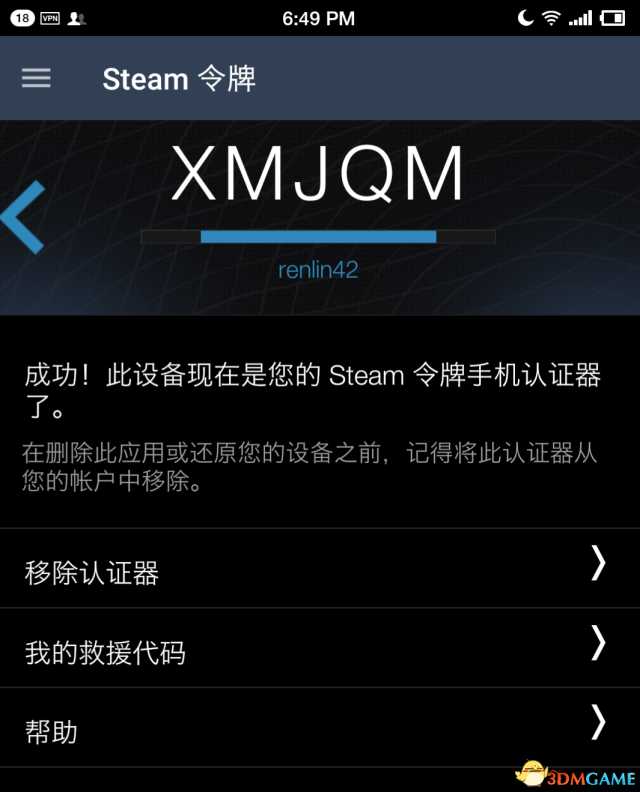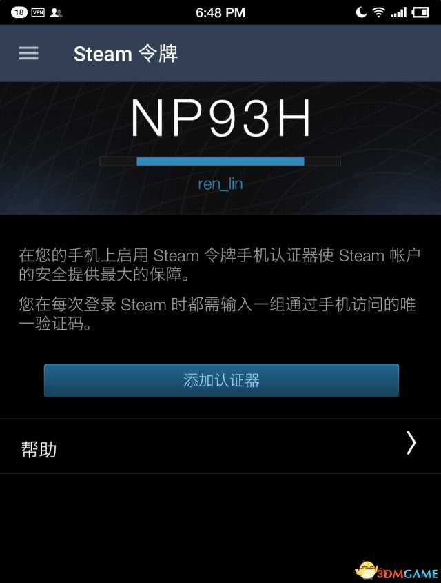 接下来返回界面你就能看见大写的6位密码了,这样你的Steam手机安全令牌就成功绑定了!