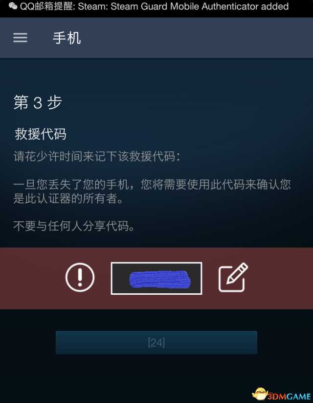 在这一步你将会获得一个六位的救援代码,请一定要妥善保管好它,不要和任何人分享。