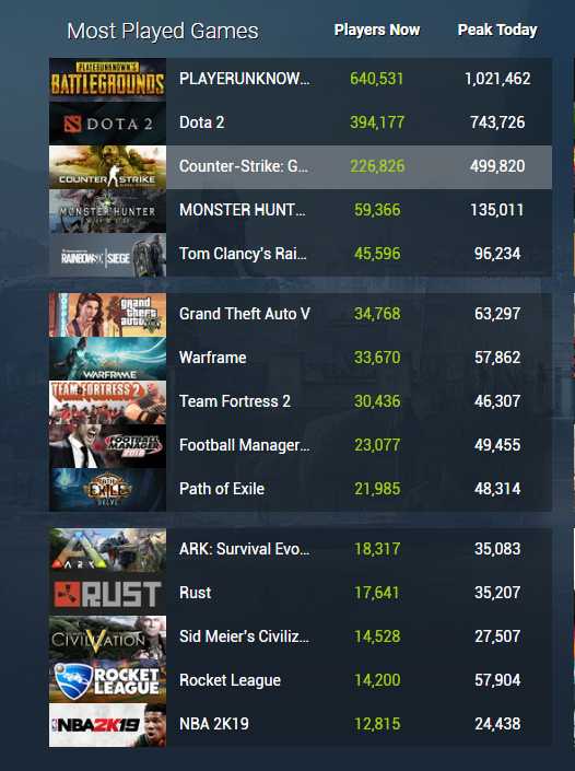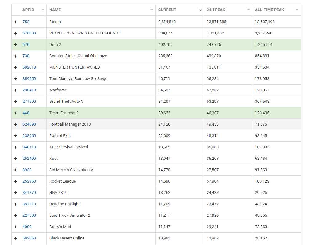 Steam现在每天的在线人数都在130万上下浮动,而这130万玩家绝大部分人数都是前十名贡献的。今天就来和小伙伴们讨论一下Steam在线人数前十名的游戏,看看都是哪些老油条在上面兴风作浪,以及哪些游戏火爆游戏只是昙花一现。