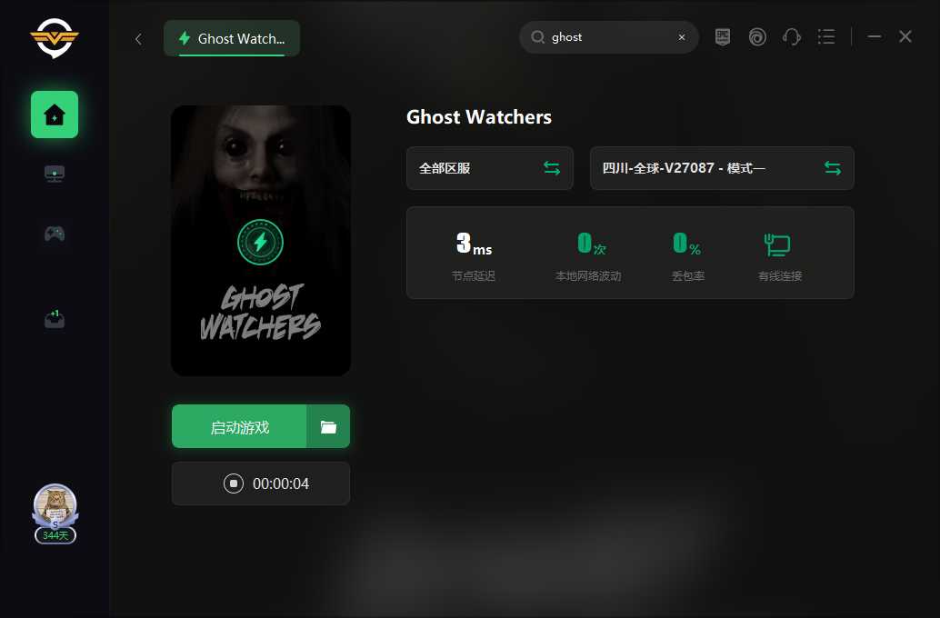 1、首先打开奇游加速工具,搜索(ghost watchers)并点击加速。