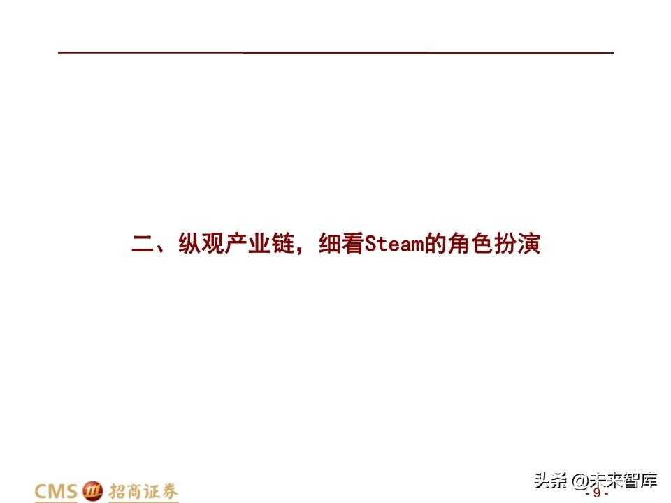 游戏产业链中有9个核心角色:IP方、游戏开发、游戏发行运营商、游戏分发平台、媒体 广告平台、支付渠道、硬件设备生产商、硬件设备经销商以及终端用户。其中,发行平台 扮演着流量提供者的角色,同时也会提供一些其它配套服务,例如数据统计、社群、客 服、公告资讯等。Steam作为全球最大的游戏分发数字平台,处于游戏产业链的中游。