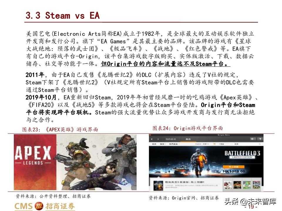 2019年10月EA宣布与V社达成合作,EA旗下游戏再次回归登陆Steam平台,包括《星球大 战绝地:陨落的武士团》等游戏。此次,多款游戏将实现双平台上架,EA旗下自己的游 戏分发平台Origin将与Steam打通账号体系。
