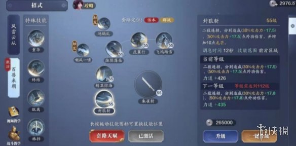 再接着释放3技能刷新2技能CD,接4技能二段【鸿鹄乱】给2技能上增伤,最后2技能收尾。