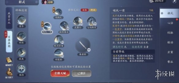 4技能:突进命中目标可触发【鸿鹄乱】二段返回伤害,两段技能均可回复8点龙,且均可以增加普通2技能伤害。