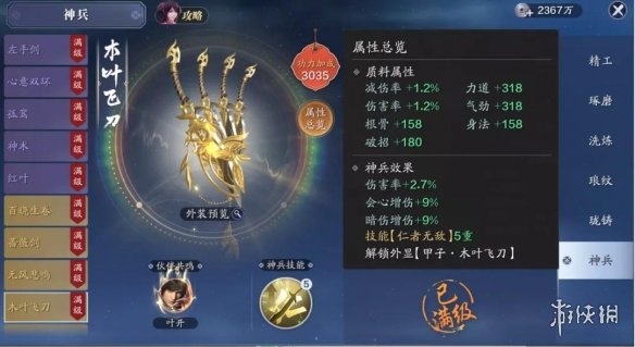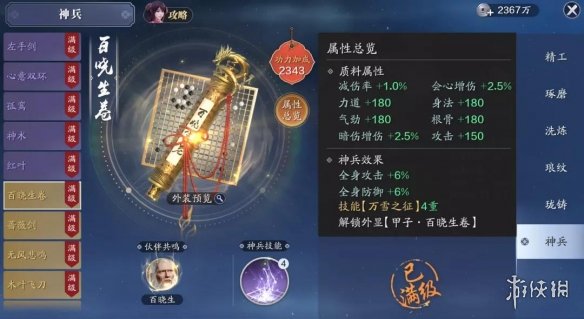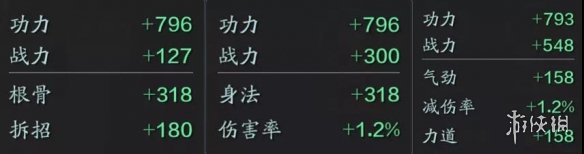 满级属性:减伤率&伤害率+1.2%,拆招+180,力道&气劲+158,身法&根骨+318。