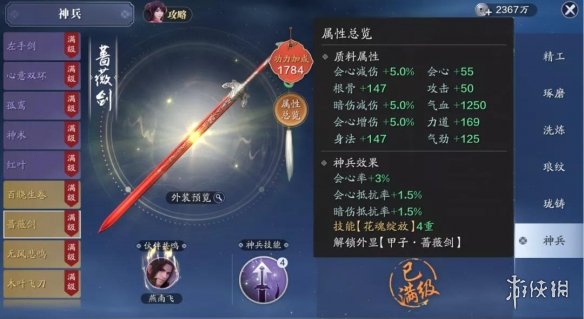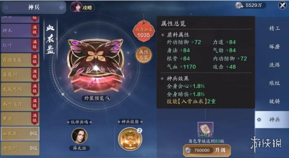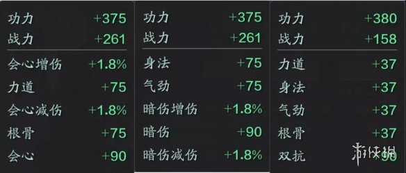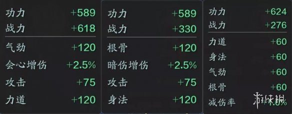 满级属性:会心增伤+5%,会心&暗伤减伤+5%,攻击+50,会心+55,气劲+125,力道+169,身法&根骨+147。