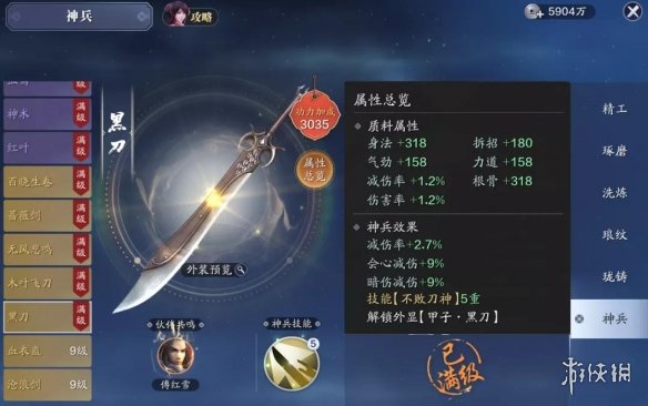 神兵效果:减伤率+2.7%,会心&暗伤减伤+9%。