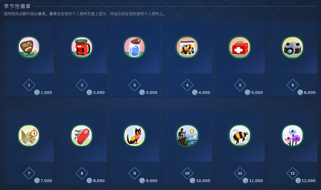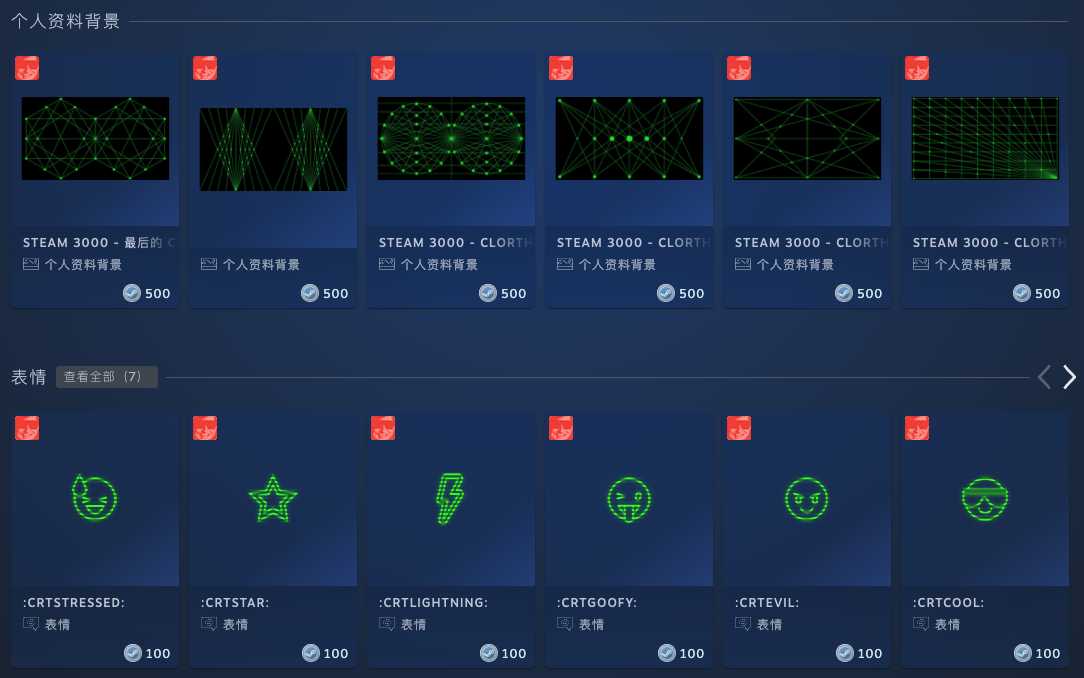 主题徽章,表情和背景可通过 Steam 点数进行兑换: