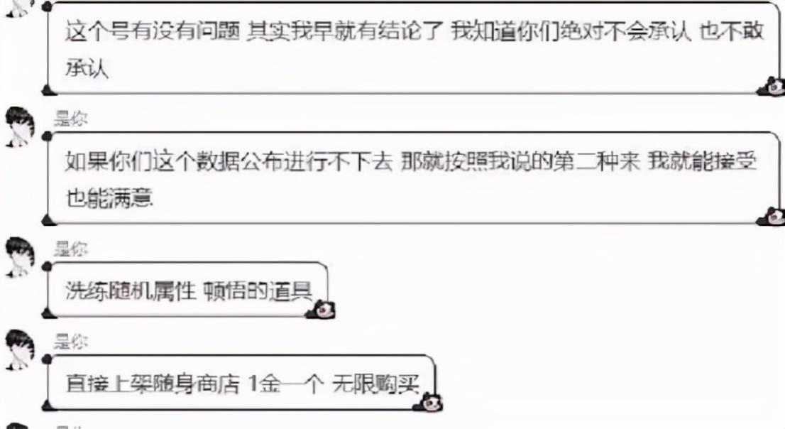 另一位神豪半曲恋江南也出面发声,给出了两个解决方案。第一个是公布账号的聊天记录、充值记录等内容,如果该账号真如官方所说属于普通玩家,那么相关记录足以证明这一切;当然如果真是官托的话,官方实在给不出这些东西的话,那么就把洗炼随机属性和顿悟道具直接上架随身商店,1金一个无限购买,毕竟官方有错在先,“醍醐之悟”和“心智之启”的钱你们就别赚了,先放血安抚玩家再说。