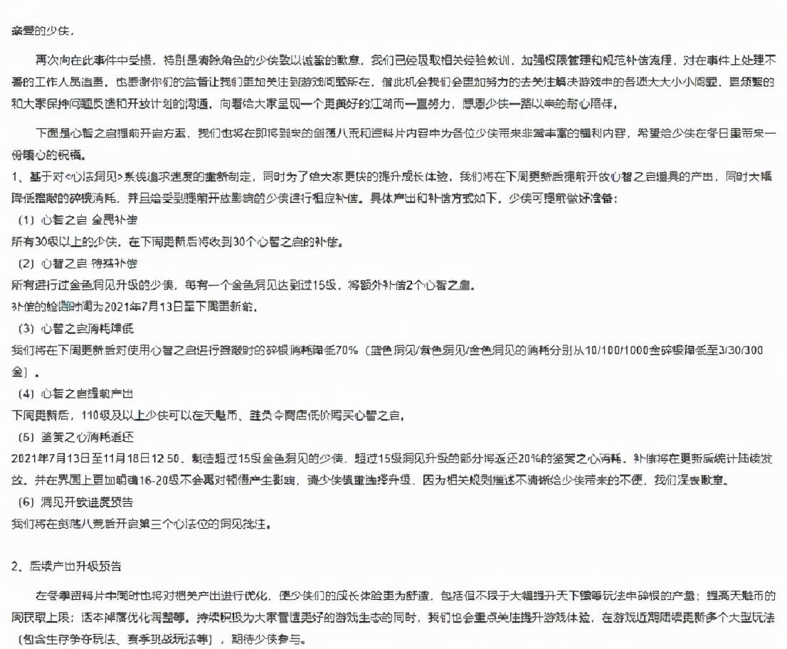 修正:18号中午临近一点,官方再次发布公告,将会全服补偿心智之启,玩家对这个补偿是否满意尚不清楚。
