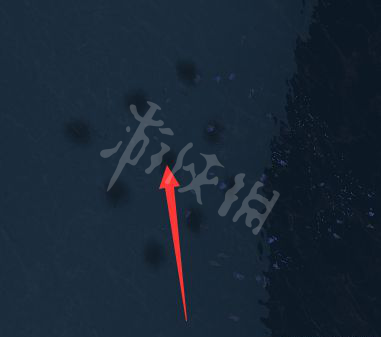 7、下杆点,正常鱼群点:如下俩张图,开低配之后的,上帝视角基本看不见鱼群,但是可以看见鱼群下的9个点,这也是下杆的基础,因为水深的原因,鱼群经常跑偏。在箭头处,也就是9个点中间下杆。