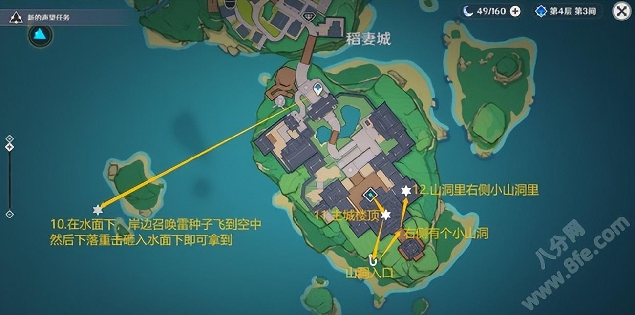 10:在水面下,岸边召唤雷种子飞到空中然后下落重击砸入水面下即可拿到